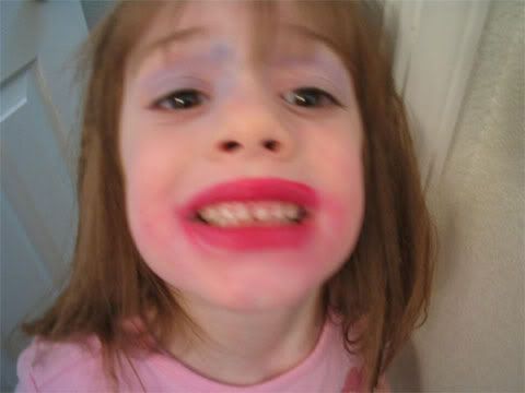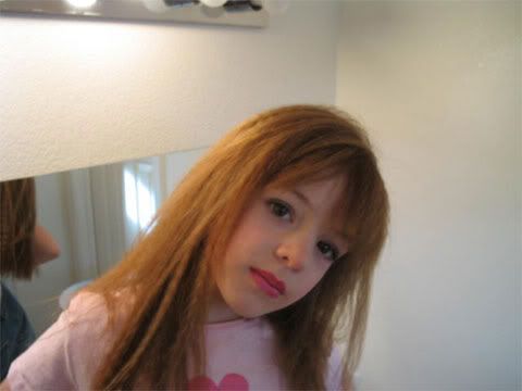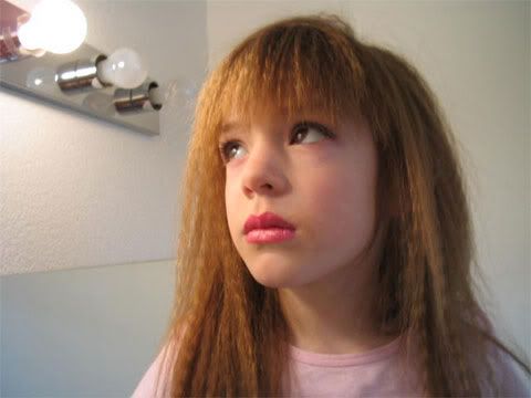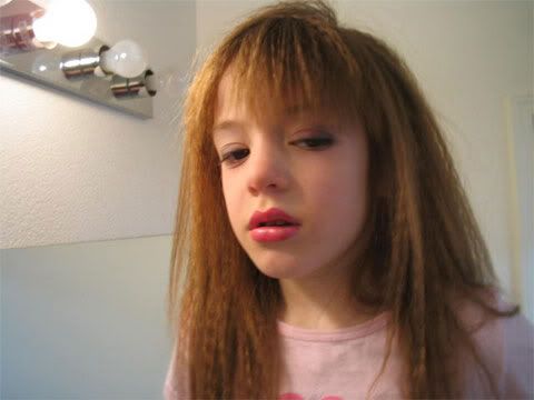 After playing in my bed ("Auntie, your bed is super super super comfy!'), making the bed, and "cleaning" my room I blowdried their hair and then crimped it. :) I put makeup on Caroline and we did a little photoshoot. She got really into it by the end and was totally posing, it was darling. Then Emma Kate did her own makeup...which was interesting.